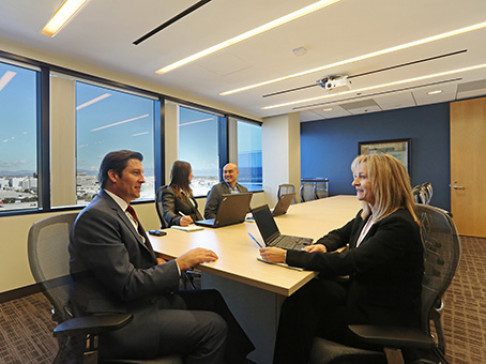 The LAX Continental Grand Center is located in a new six-story building in the heart of El Segundo's business district, and offers impressive views of the mountain range.